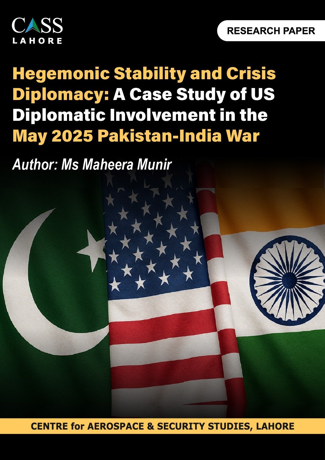 US crisis diplomacy has historically played a crucial role in managing India-Pakistan crises. However, the May 2025 war presented a distinct case. Despite Vice President JD Vance’s earlier assertions that the war between India and Pakistan is fundamentally none of the US’s business, President Trump’s abrupt mediation raised questions over the underlying motivations behind the diplomatic intervention. This paper establishes a nexus between hegemonic stability theory and crisis diplomacy, highlighting that hegemonic powers use crisis diplomacy as a tool to assert their authority and protect their strategic interests. Under a qualitative approach, this paper employs discourse analysis and expert interviews. It argues that, in addition to preventing nuclear escalation, the US diplomatic intervention was motivated by multiple political and strategic drivers, including hegemonic assertion, offshore balancing, international signalling, preserving regional and international stability, and reinvigorating relations with Pakistan after the war exposed India’s limitations to act as a regional security provider and counterweight to China. It damaged India’s international credibility and strengthened Pakistan’s position as a middle power in the new regional environment.